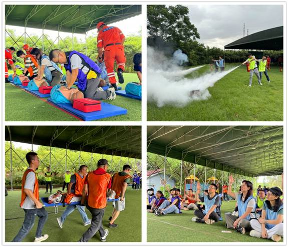 此次運(yùn)動(dòng)會(huì)小組實(shí)訓(xùn)及競賽形式進(jìn)行。設(shè)置拯救心臟--心肺復(fù)蘇、消防勇士--滅火器滅火、穿越火線--傷員搬運(yùn)、爭分奪秒--安全生產(chǎn)知識競賽等四個(gè)項(xiàng)目。每個(gè)項(xiàng)目分八支隊(duì)伍先由教官進(jìn)行理論與操作講解,再由同事們實(shí)操訓(xùn)練,最后進(jìn)行實(shí)操比賽。在專業(yè)教官的帶領(lǐng)下,員工們通過一整上午的認(rèn)真學(xué)習(xí)及親身體驗(yàn),全力以赴參加4個(gè)項(xiàng)目的競賽。