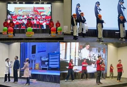 會議在歡樂的氛圍中進行最后一項議程——紡出公司春節(jié)文藝表演。節(jié)目《旗開得勝》以霸氣的鼓聲震撼開場;小品《織夢同心,微力無邊》調(diào)侃出紡出人工作中的歡樂點滴;小品《不一樣的互聯(lián)網(wǎng)體檢》以詼諧的方式演繹了當代人的“數(shù)字煩惱”;《馬到成功不猶豫》用斗志昂揚的歌聲表達了對未來的憧憬。